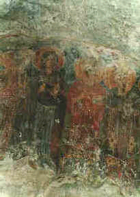The unknown fresco-painter is shown to us here as a solid artisan who skillfully fits the figures into the uneven wall surface, which is also the reason why they don’t lose much of the reality of the forms and proportions. A very realistic impression is achieved when the painted figures of these compositions are craftily transformed through one monumental form.